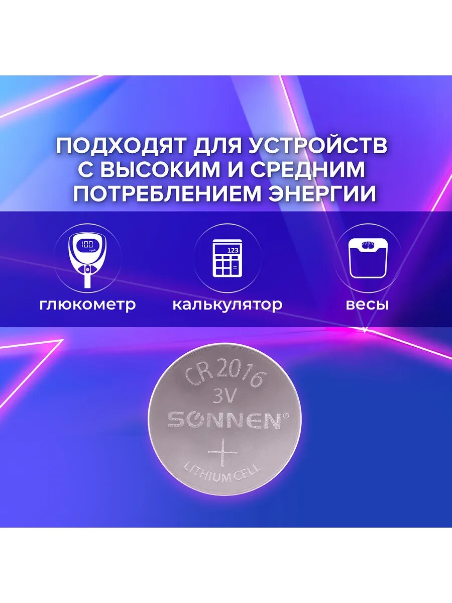 Батарейка SONNEN Lithium, CR2016, литиевая, 1 шт., в блистере, 451972 интересное: