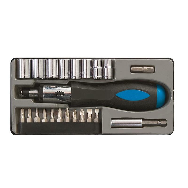 Купить Отвертка реверсивная, 22 CrV бит и головок, прорезиненная ручка, в чемоданчике