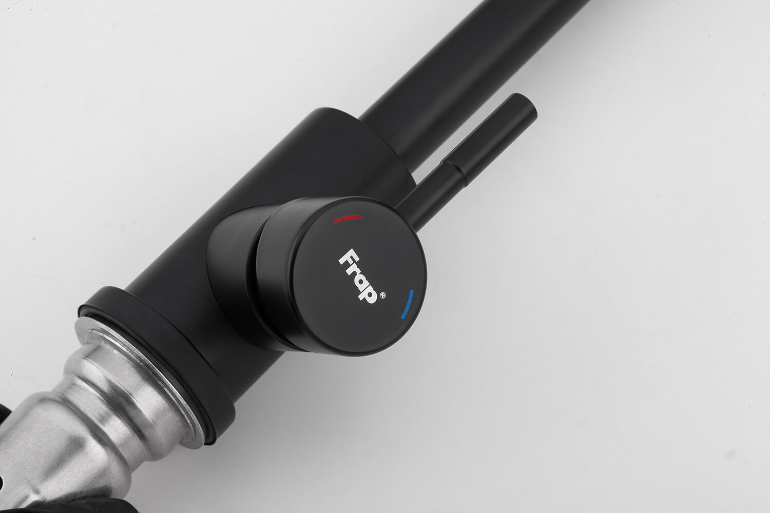 FRAP F40899-4, Смеситель для кухни (черный, нержавеющая сталь, картридж 35mm, крепление на гайку)