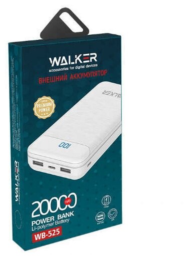 Повербанк, WALKER, WB-525, 20000 mAh, белый // повербанк 20000, power bank, powerbank, внешний аккумулятор, повербанк xiaomi, повербанк для айфона