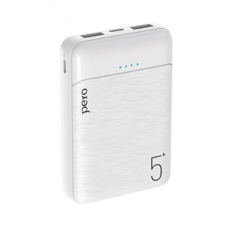 Внешний аккумулятор PERO PB01 5000 mAh, Li-Pol, output 2xUSB-A 2.1A, белый, 1598840