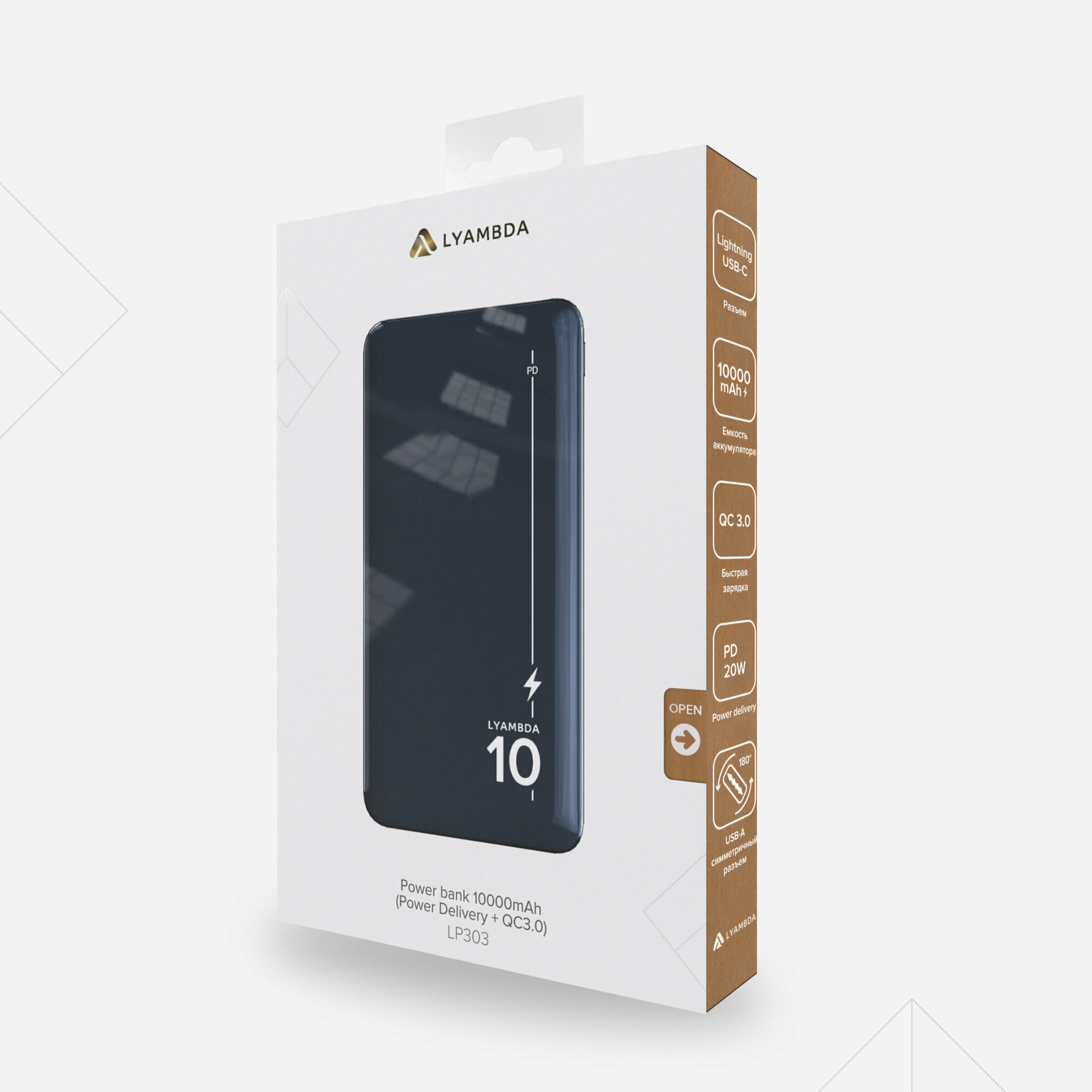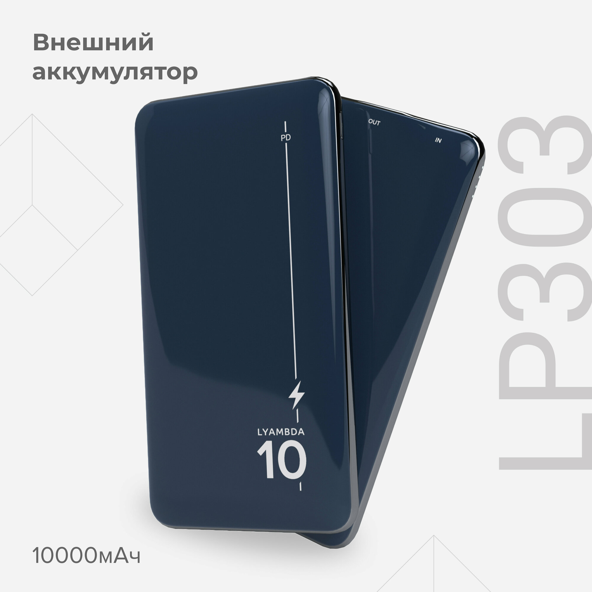 Внешний аккумулятор 10000 мАч Lyambda Power Delivery 20W + QC3.0 Slim LP303 / Power Bank с быстрой зарядкой, темно-синий