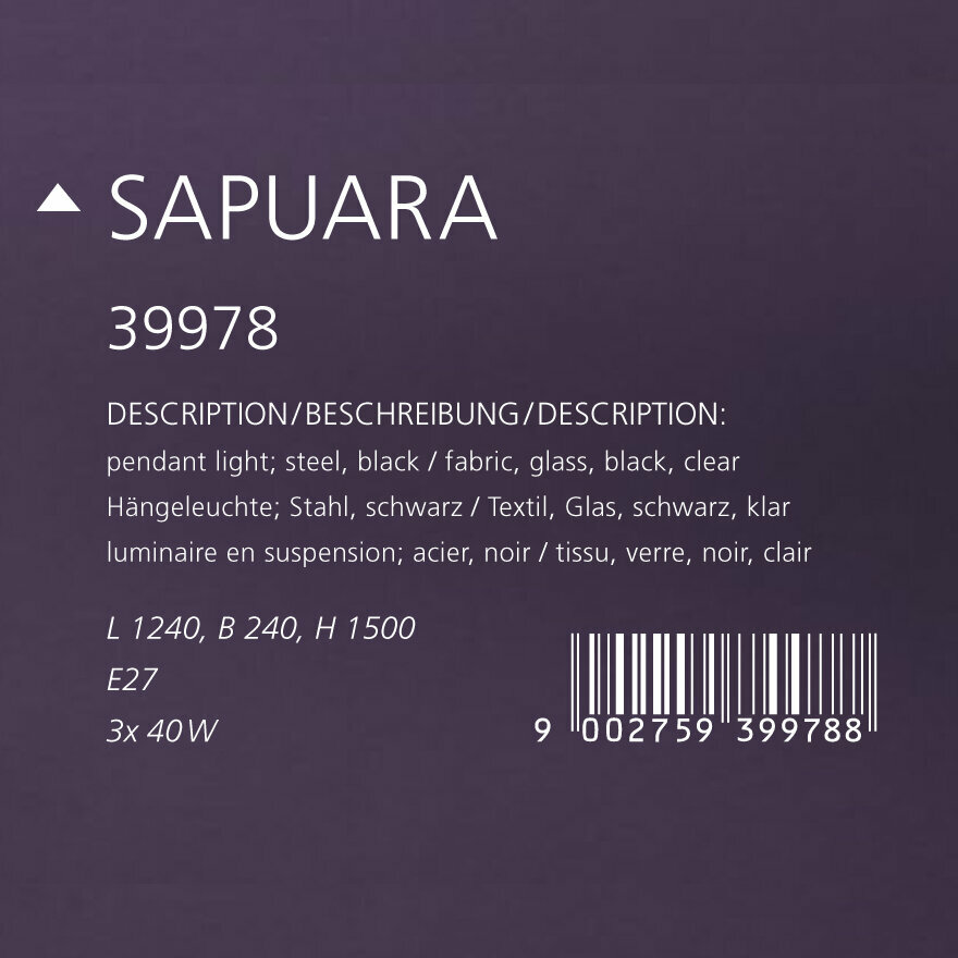 Светильник подвесной Eglo Sapuara 39978, Черный, E27 120