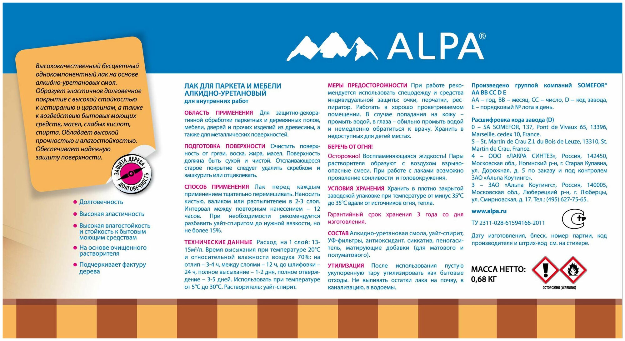 Лак для паркета и мебели Alpa алкидно-уретановый матовый, 0,75л интересное: