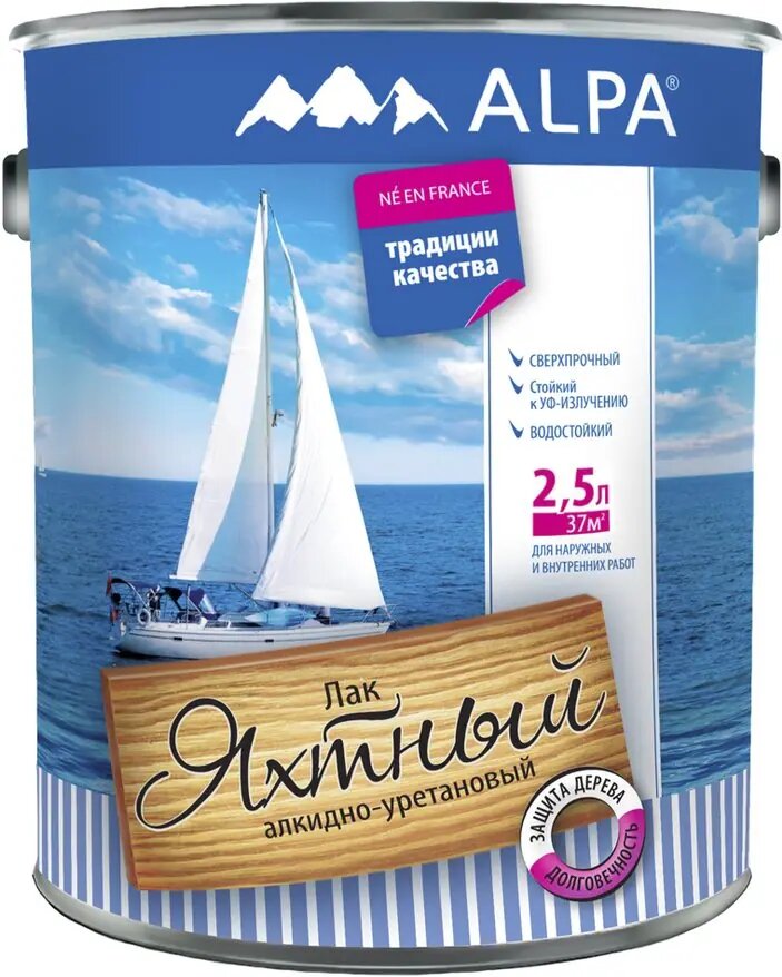 Лак Яхтный Alpa 2.5л Бесцветный, Глянцевый, Алкидно-Уретановый, Сверхпрочный / Альпа.