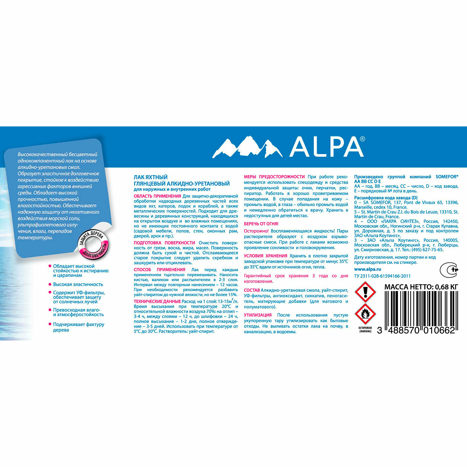Лак яхтный Alpa алкидно-уретановый глянцевый, 0,75л интересное:
