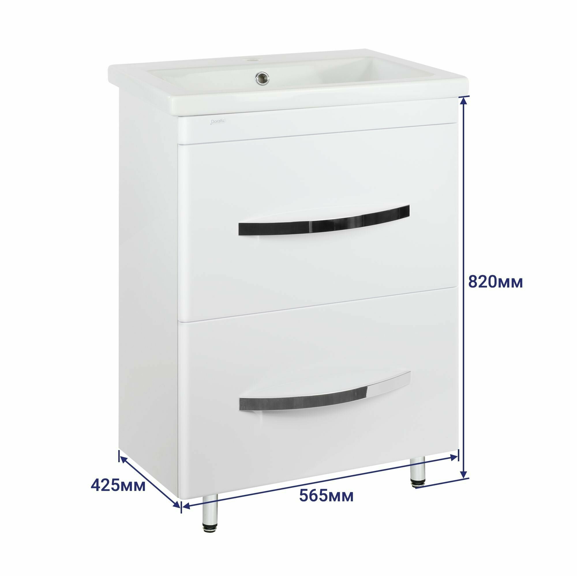 Тумба Экватор 60 DORATIZ, напольная, белая, с двумя ящиками, под умывальник Сomo 60, 9912.809 интересное: