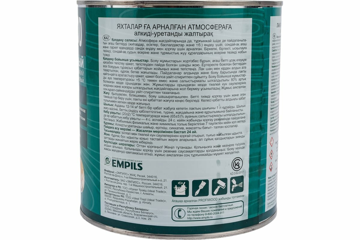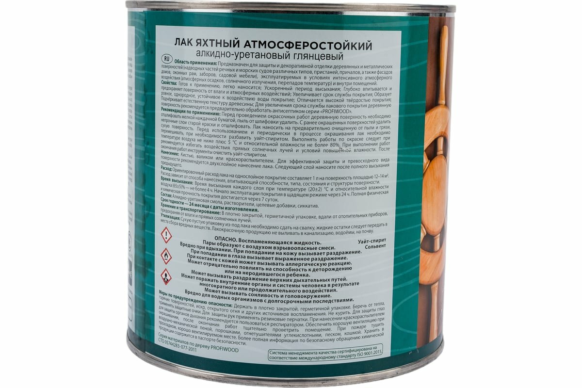 PROFIWOOD Лак яхтный атмосферостойкий алкидноуретановый глянцевый 5 л 4.6 кг 75162