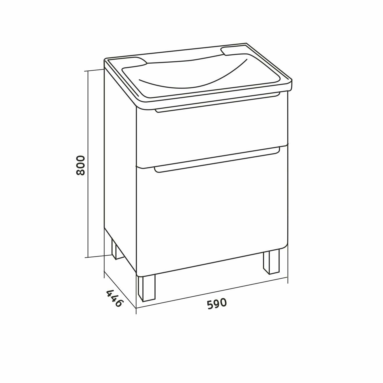 Тумба под раковину Grossman Адель 59х45 напольная, два ящика, белая (106007)