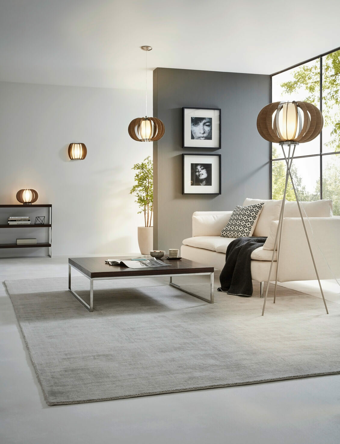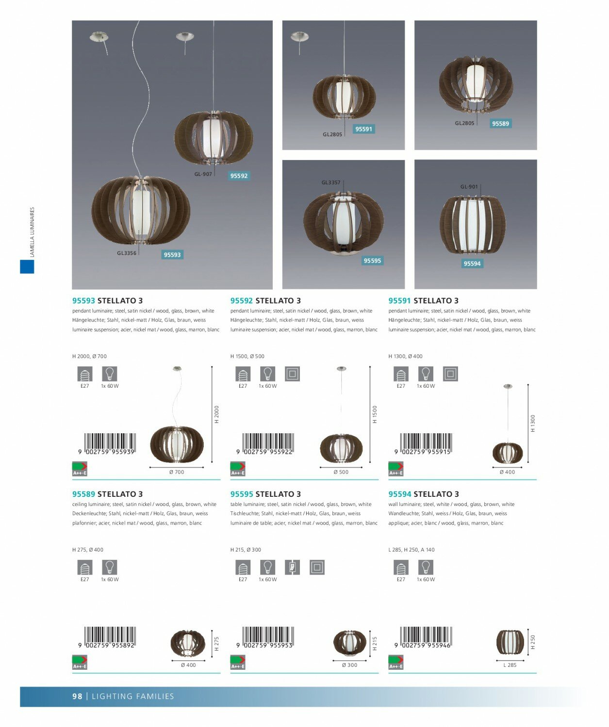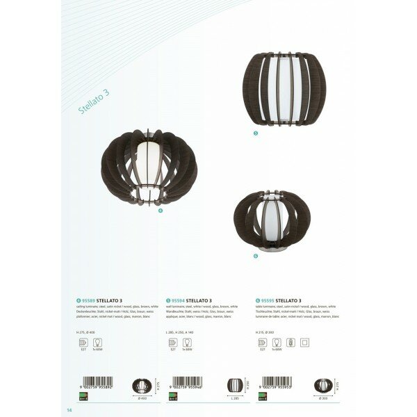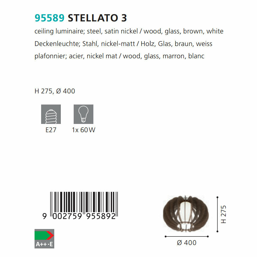 95589 Потолочный светильник STELLATO 3, 1х60W (E27), ?400, H275, сталь, никель мат. /дерево, стекло,