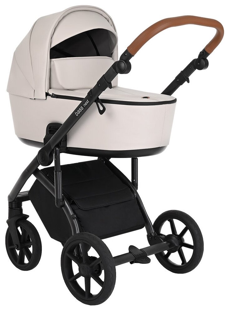 Коляска 2 в1 Roan Bass Next Кожа Caramel/Black/руч.Тем.коричневый