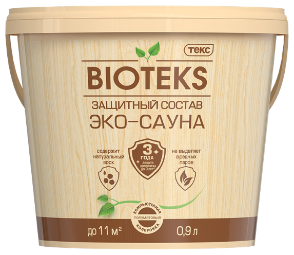 Текс BIOTEKS эко-сауна защитный состав термостойкий, водорастворимый, полуматовый (0,9л)