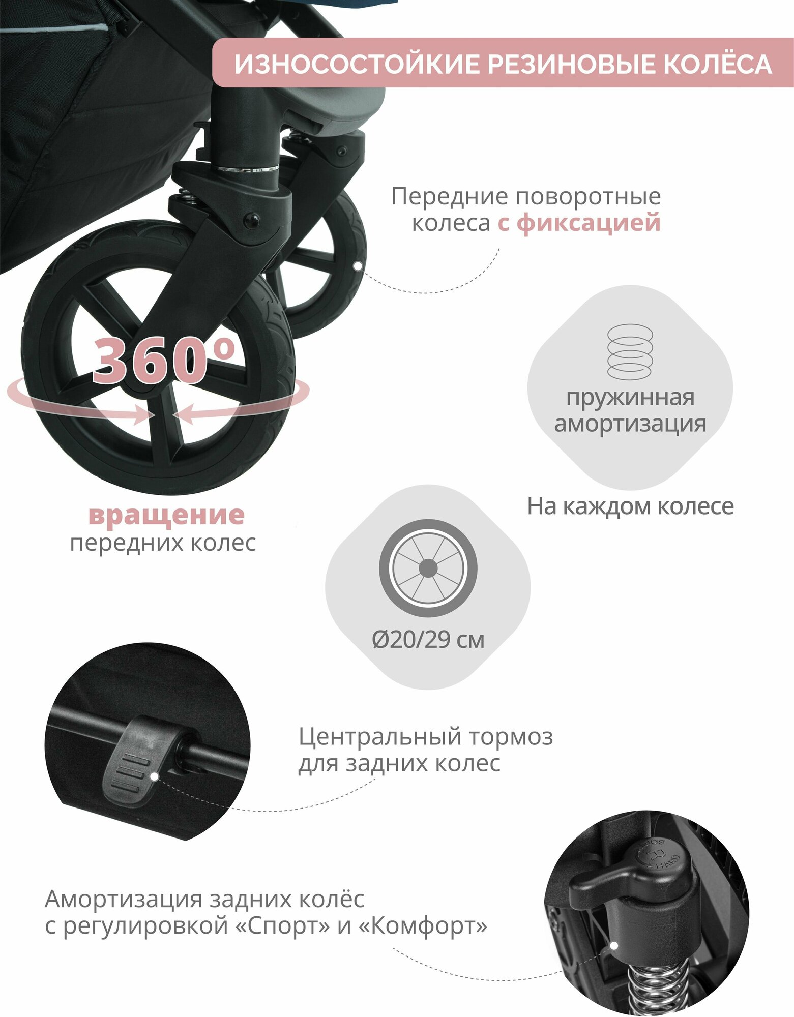 | Аксессуары в комплекте | антимоскитная сетка, бампер, держатель для бутылочки, капюшон, накидка на ноги, подстаканник, солнцезащитный козырек |