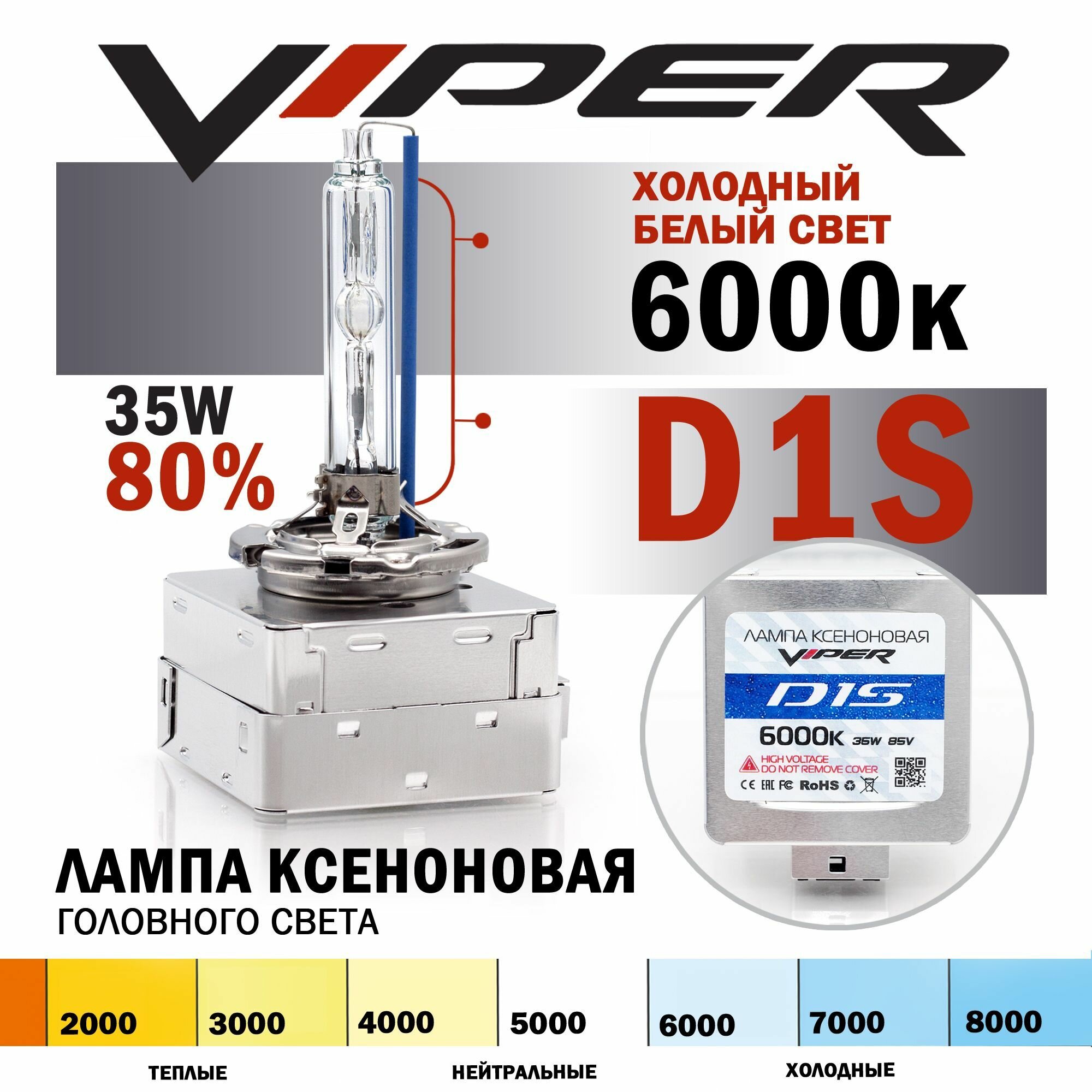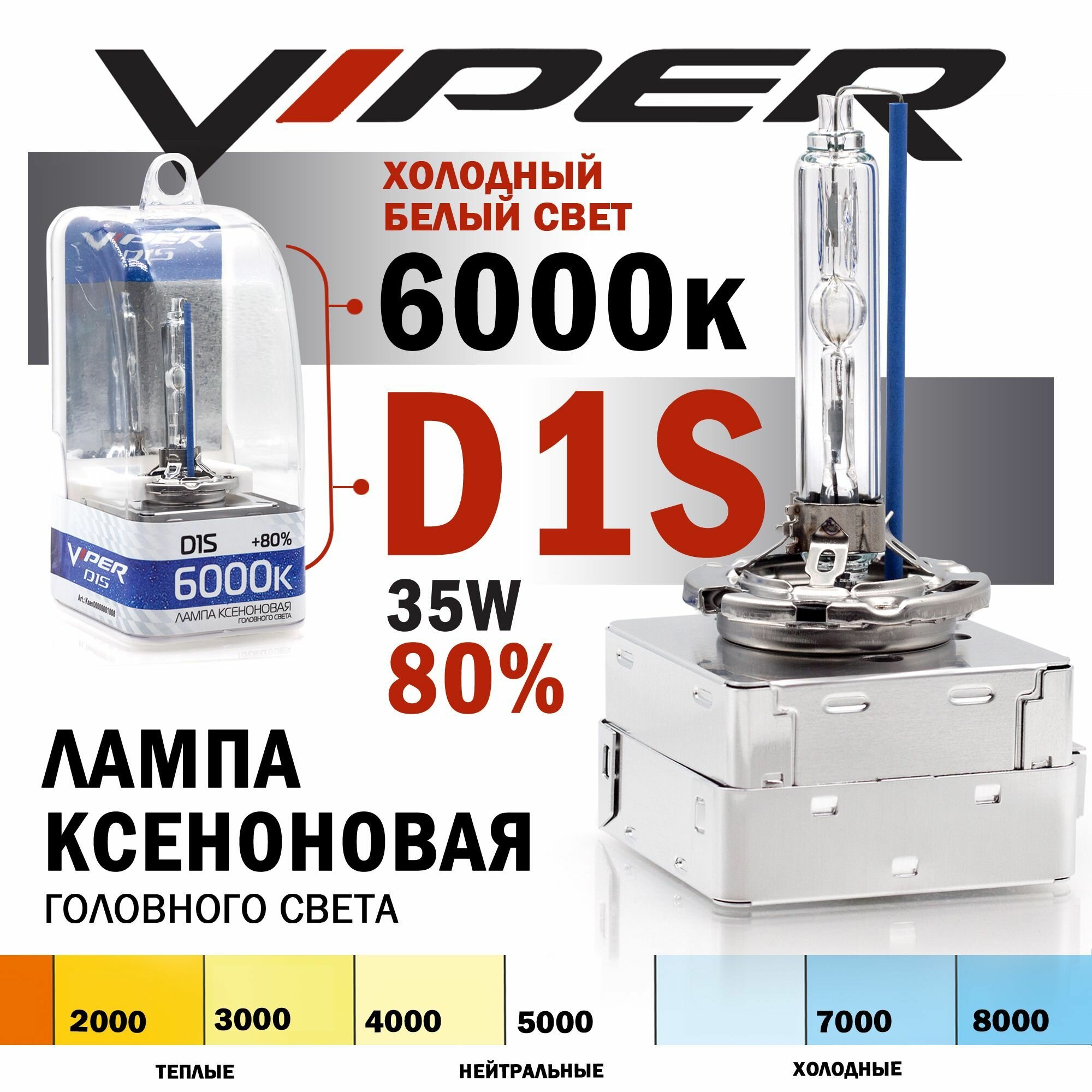 Купить Ксеноновая лампа D1S VIPER +80% 6000K
