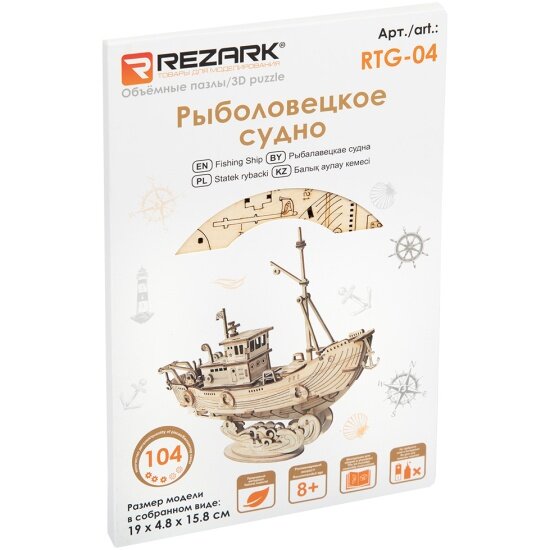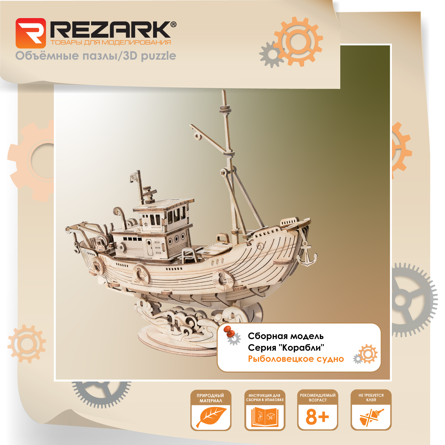 Сборная модель (фанера) "REZARK" RTG-04 Серия "Корабли" Пазл 3D Рыболовецкое судно интересное: