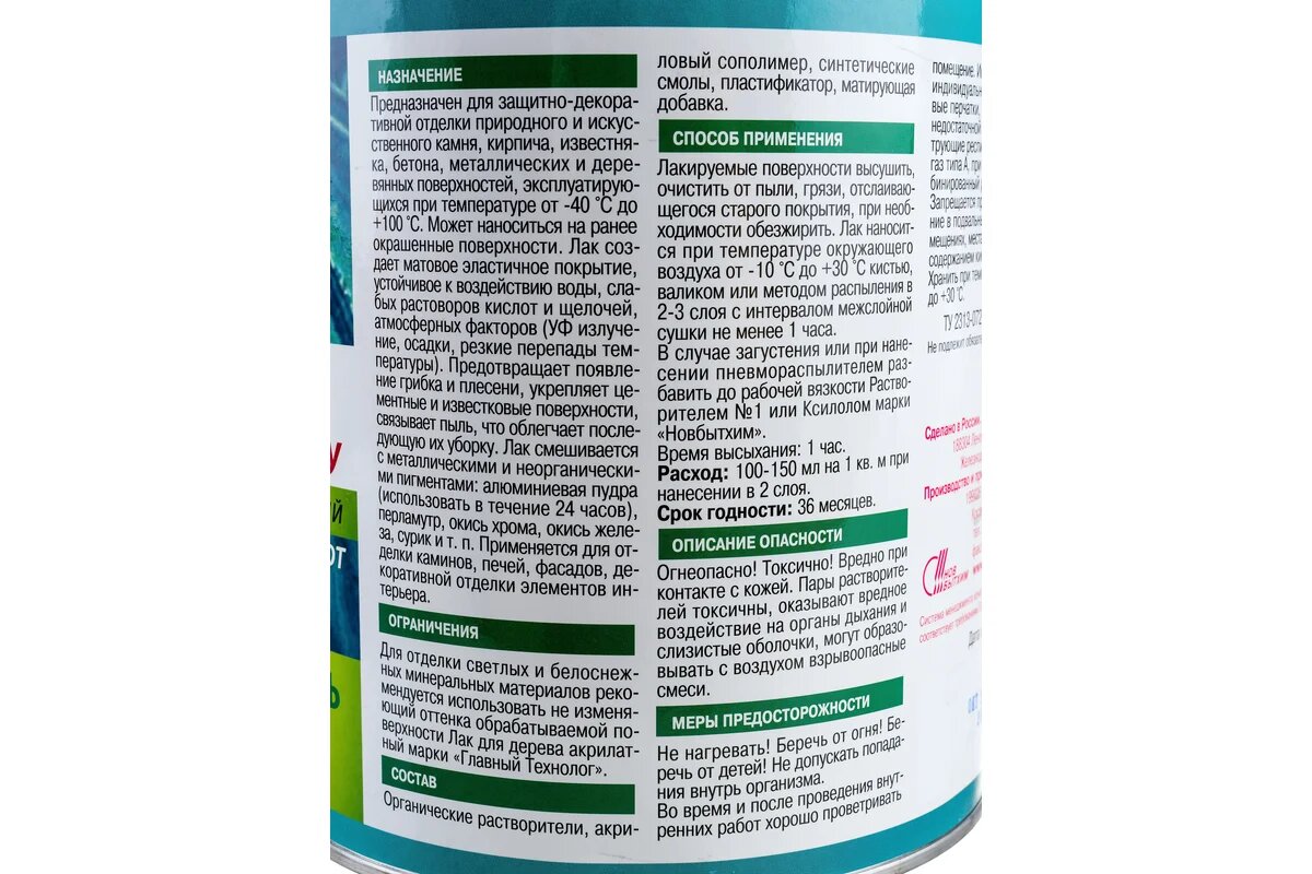 Лак по камню и кирпичу Главный Технолог матовый 0.75 л