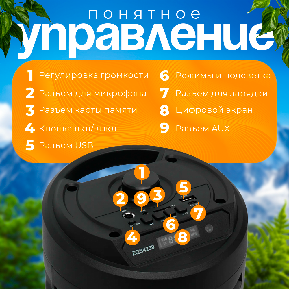 Портативная колонка bluetooth zqs 4239 с пультом ДУ и микрофоном