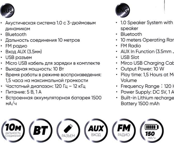 | Отзыв: | колонка компактная и работает громко разобралась сразу |