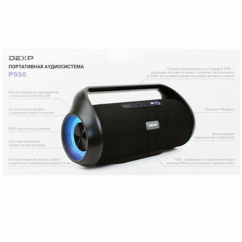 Ниже Вы можете прочитать отзывы на Портативная колонка DEXP P550, черный, ознакомится с подробными характеристиками, посмотреть интересные обзоры и фотографии на Портативная колонка DEXP P550, черный.