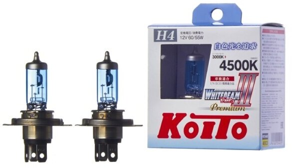 Галогеновые лампы KOITO WHITEBEAM III Premium H4 4500К (2 лампы)