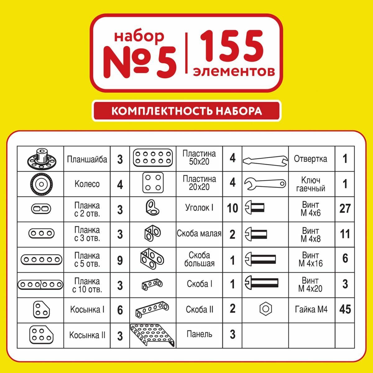 Купить Конструктор металлический юнландия «Для уроков труда №5», развивающий, 155 элементов, 104683