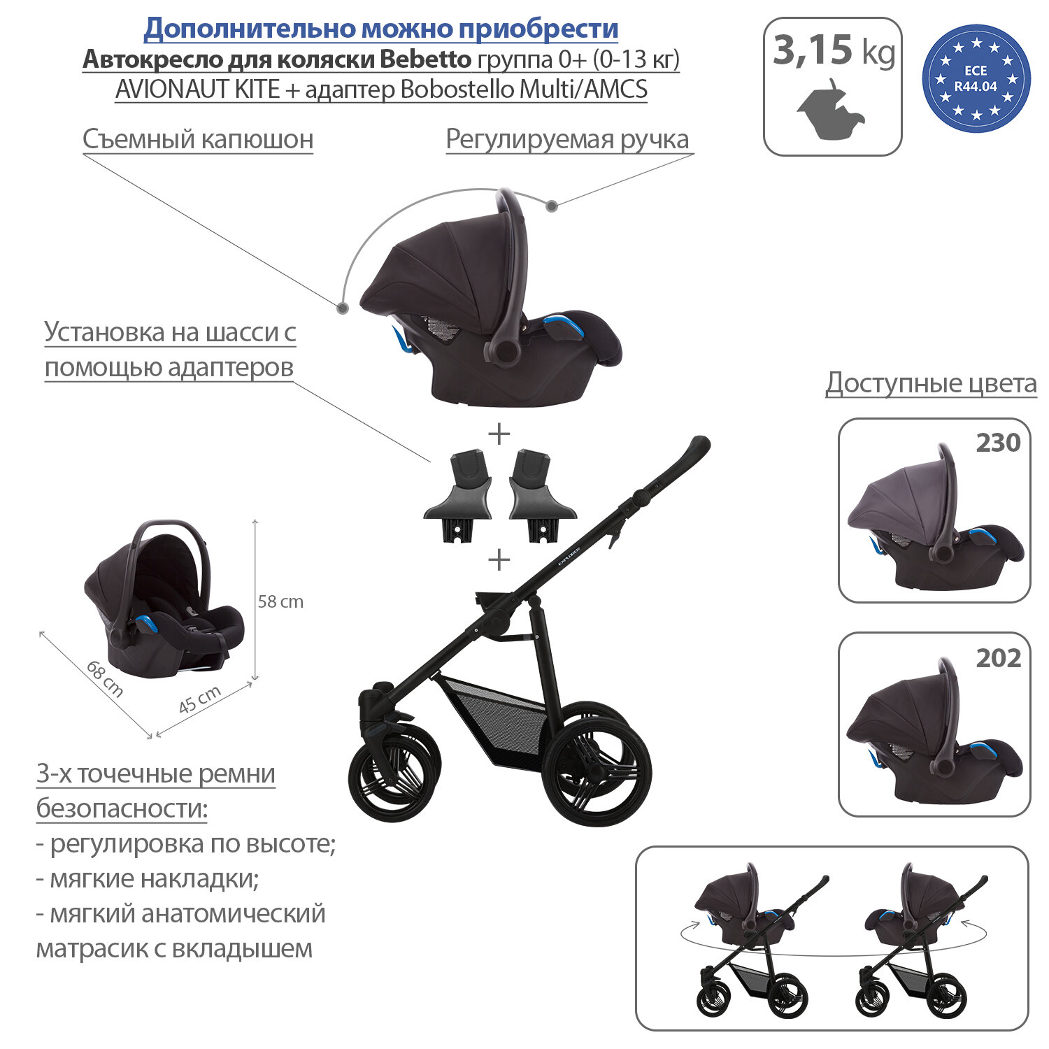 | Совместимые автокресла | AВТОКРЕСЛО ГРУППА 0+ BOBOSTELLO MARS |
