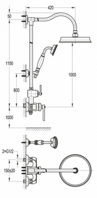 | Форма верхнего душа | круглая |