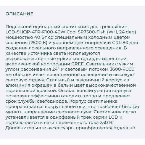 Светильник LGD-SHOP-4TR-R100-40W Cool SP7500-Fish
