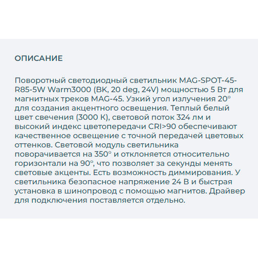 Светильник MAG-SPOT-45-R85-5W Warm3000 (BK, 20 deg, 24V)