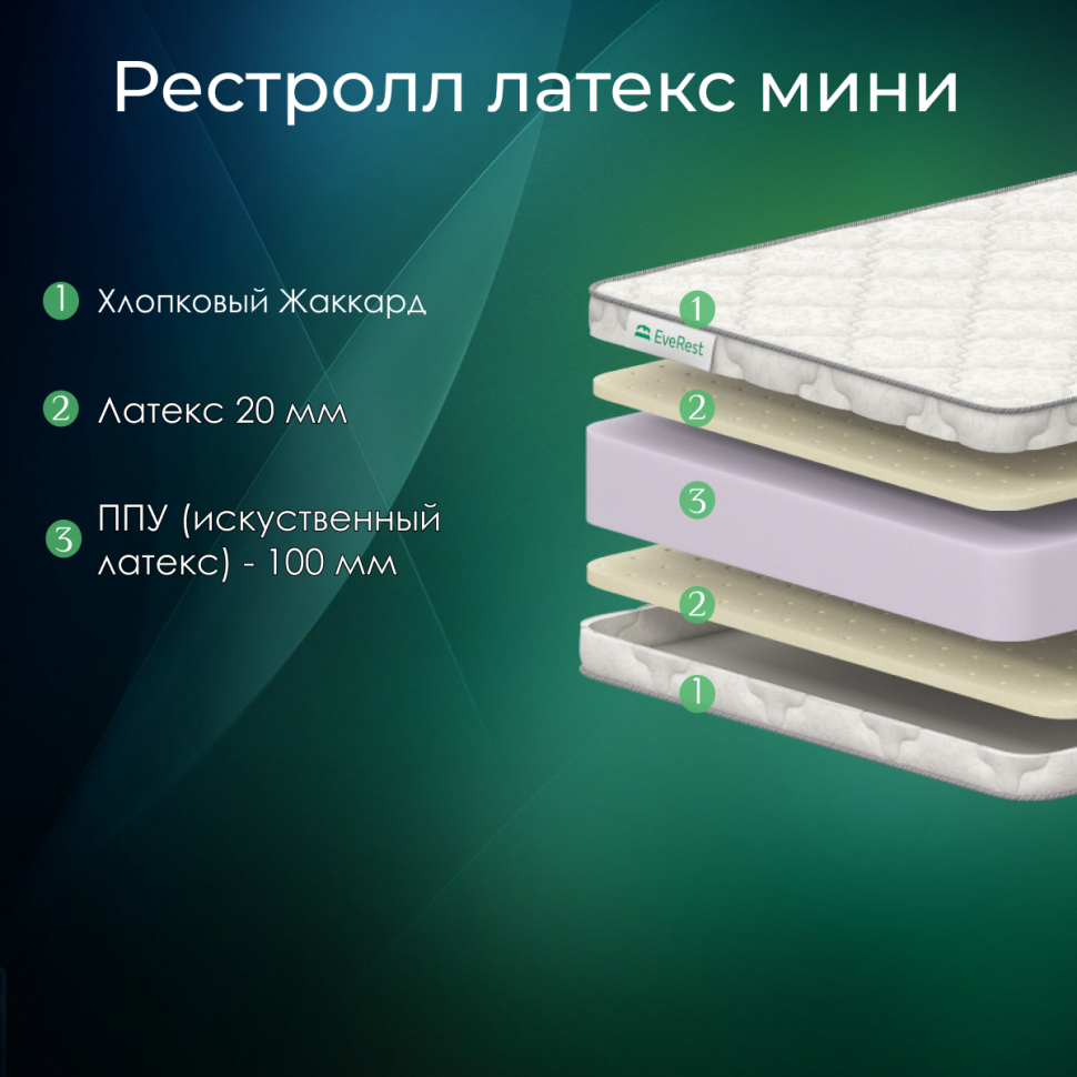 Матрас Everest Рестролл латекс мини, 100x200, высота 15 см, беспружинный