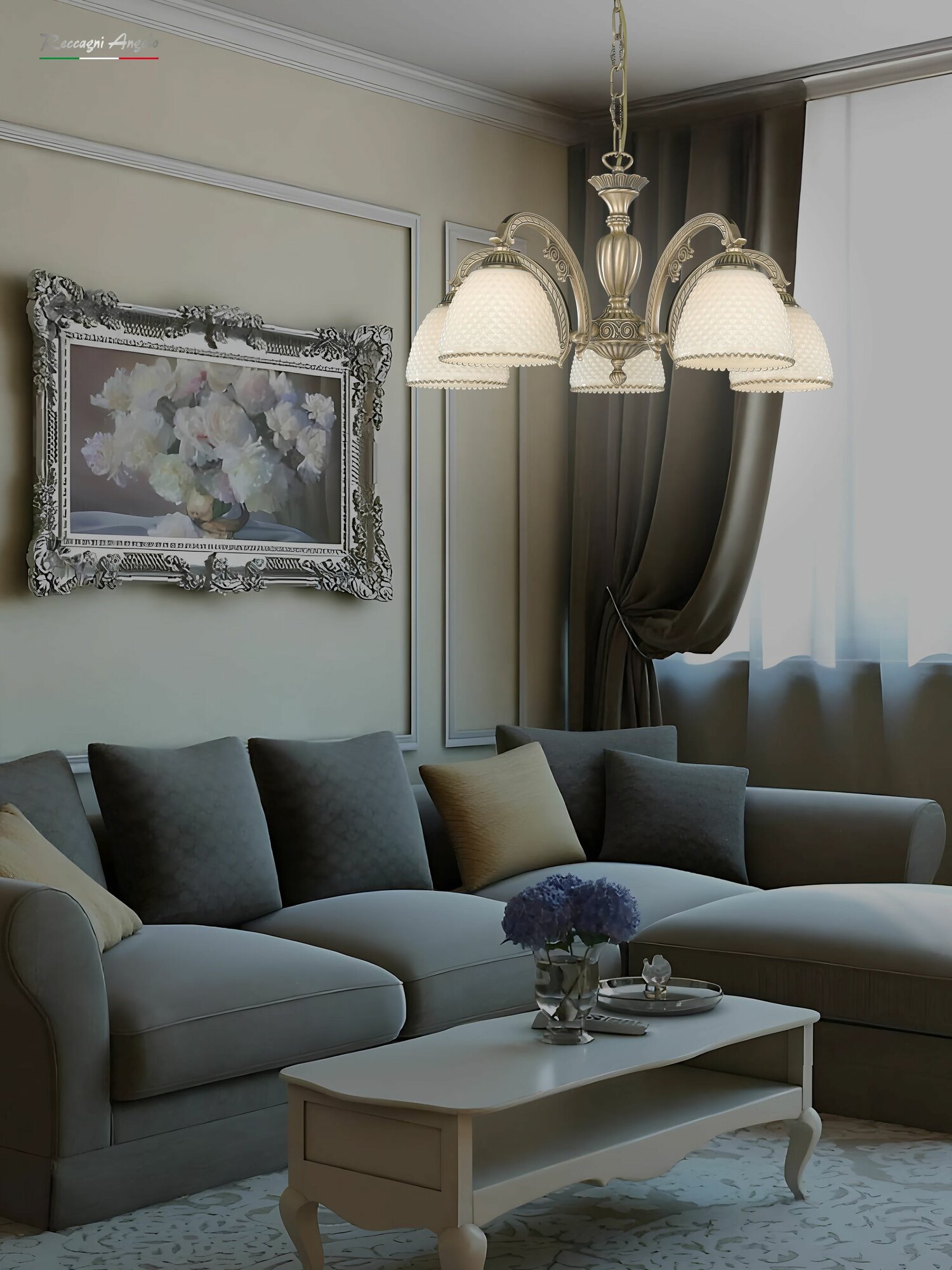 L 7005/5 Люстра подвесная Reccagni Angelo, 5 плафонов, бронза