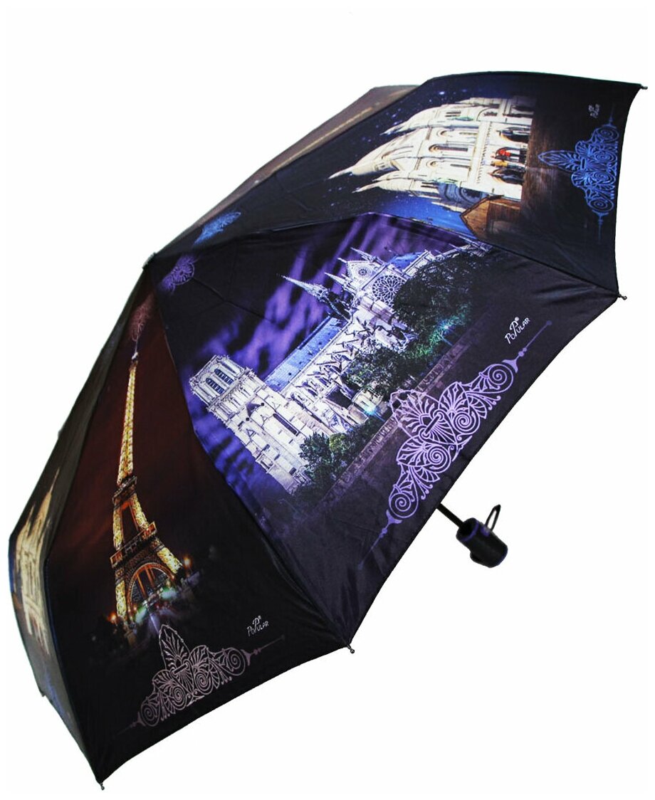 Купить Женский зонт Popular Umbrella 1273/Черный-Сиреневый