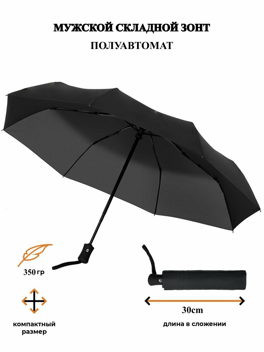 Мужской зонт 3 сложения, полуавтомат, 144P-9 черный интересное: