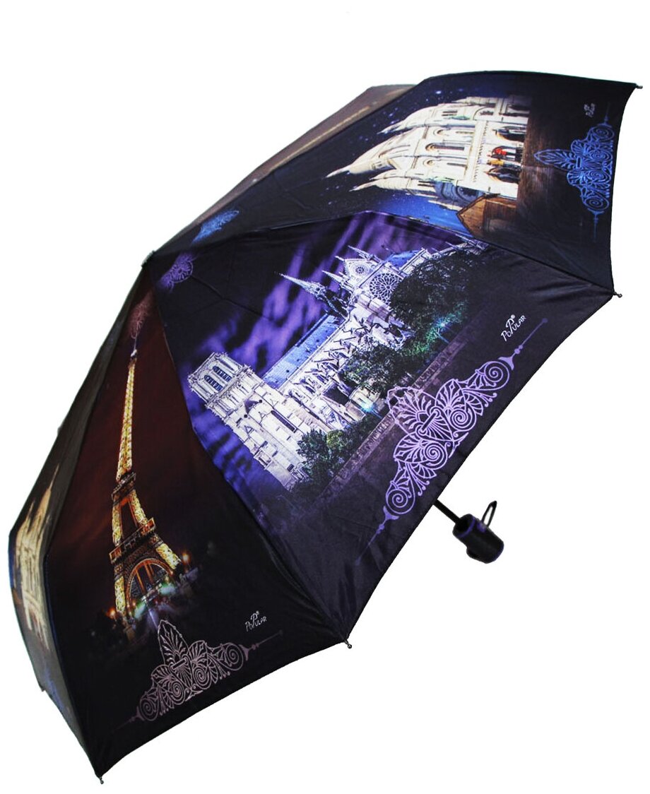 Зонт "Три Слона" женский №310-5, купол D=103 см, 10 спиц, суперавтомат бежево-черный