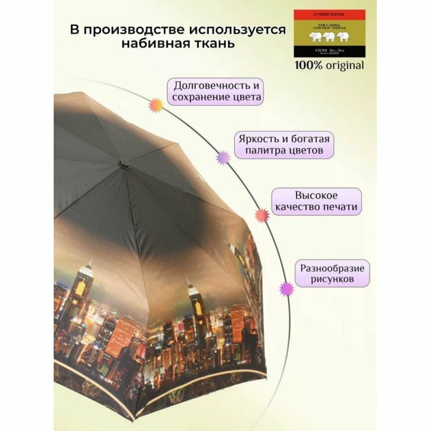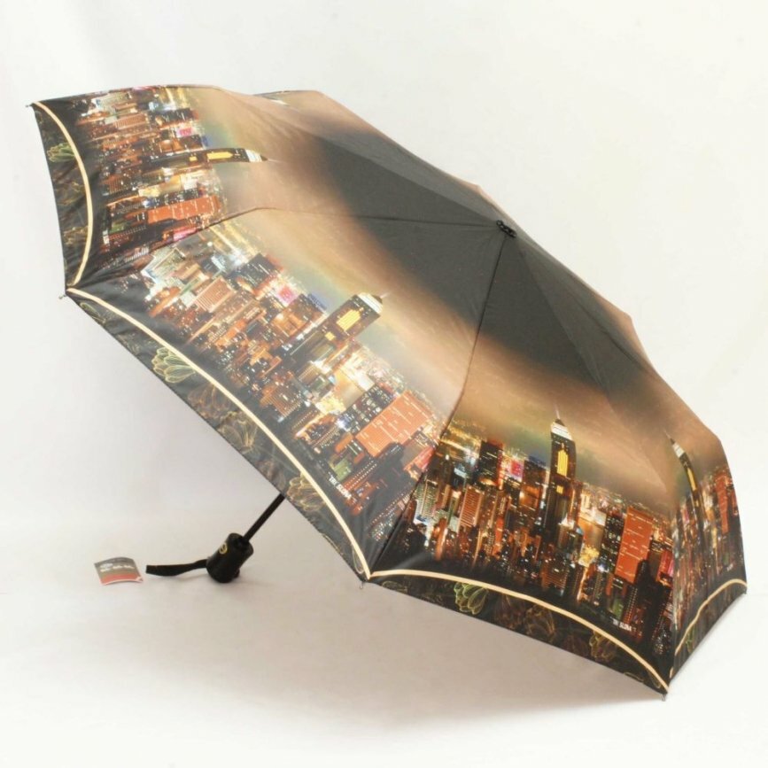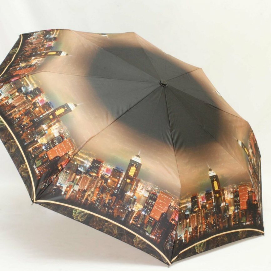 Зонт "Три Слона" женский №310-5, купол D=103 см, 10 спиц, суперавтомат бежево-черный