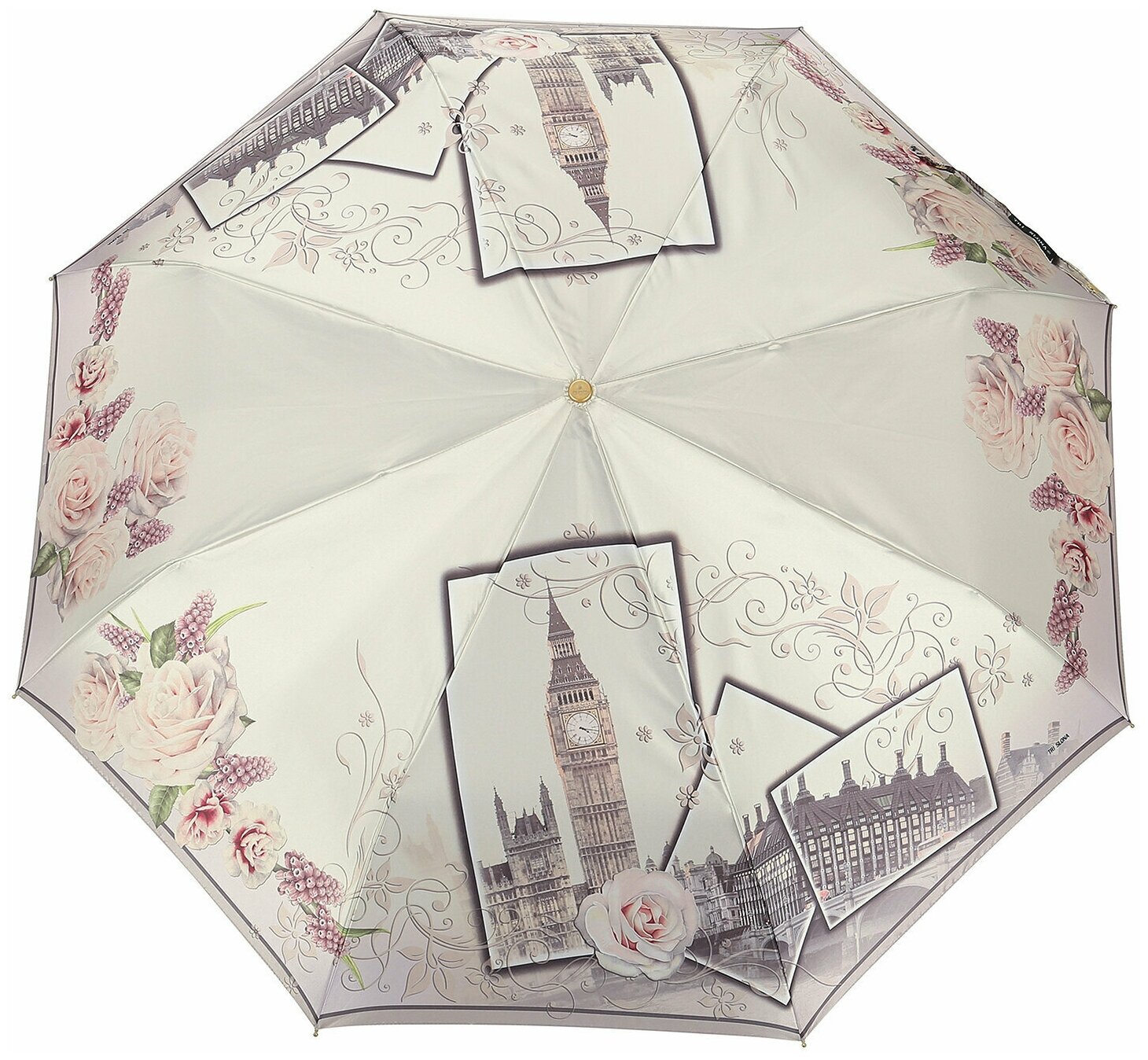 Купить Зонт женский ТРИ слона, 3 сложения, автомат, сатин 3873-P-03, белый
