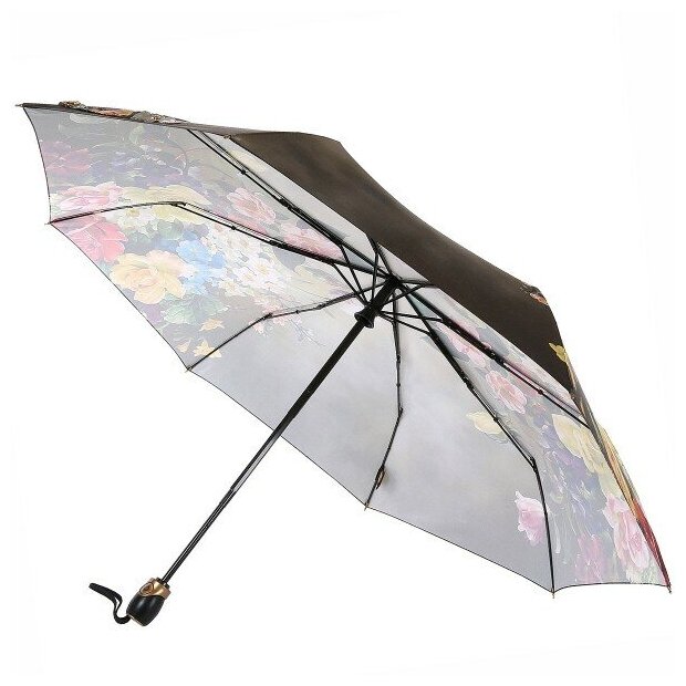 Зонт "Три Слона" женский №310-5, купол D=103 см, 10 спиц, суперавтомат бежево-черный
