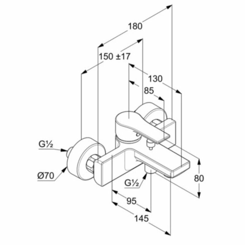 Настенный смеситель Kludi Zenta, арт. 486700565, с выходом на душ (без лейки), неповоротный излив