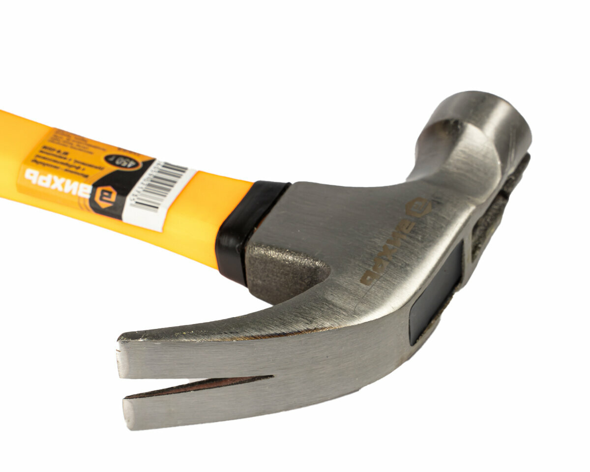 Молоток - гвоздодёр, 450 г, фибергласовая двухкомпонентная ручка, с магнитом Вихрь