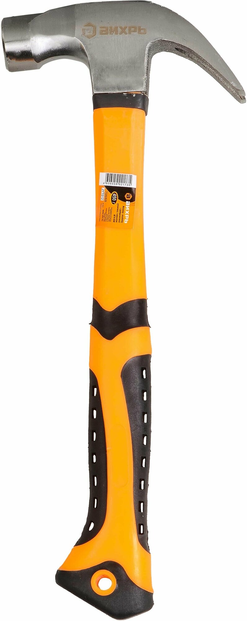 Молоток-гвоздодер Вихрь, фиберглассовая двухкомпонентная рукоятка, 450 г