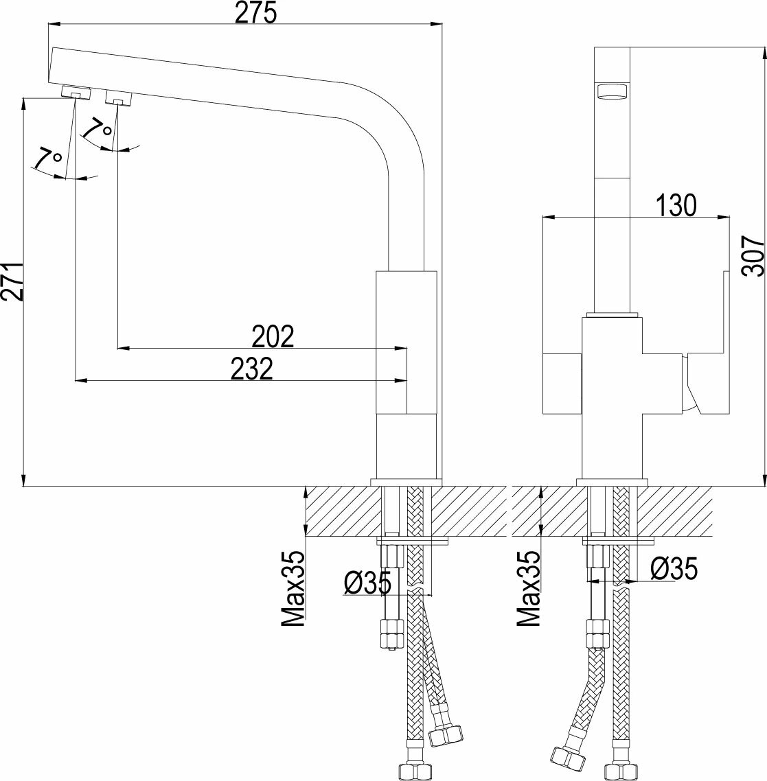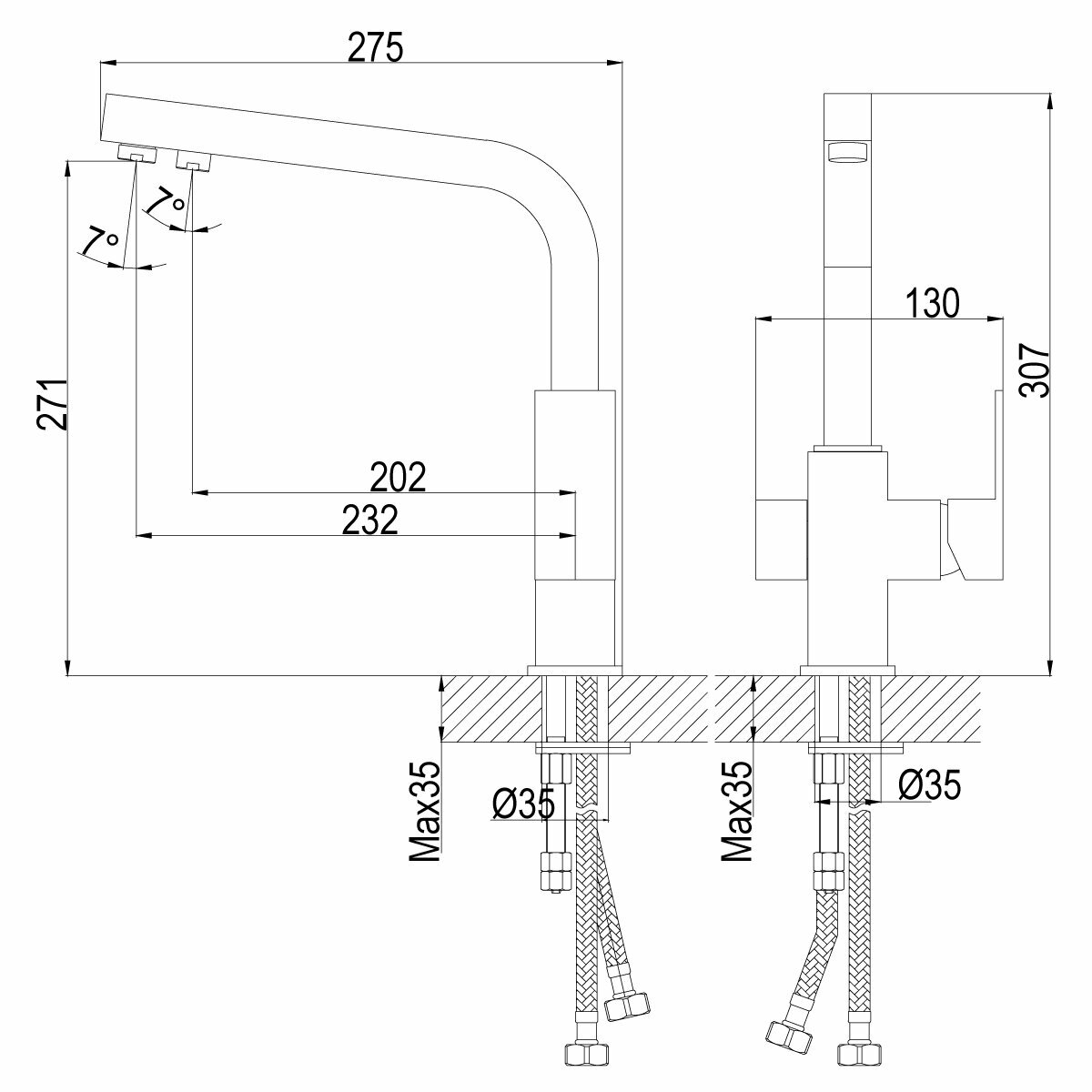 Смеситель однозахватный (35 мм) для кухни c подключением к фильтру с питьевой водой Rossinka