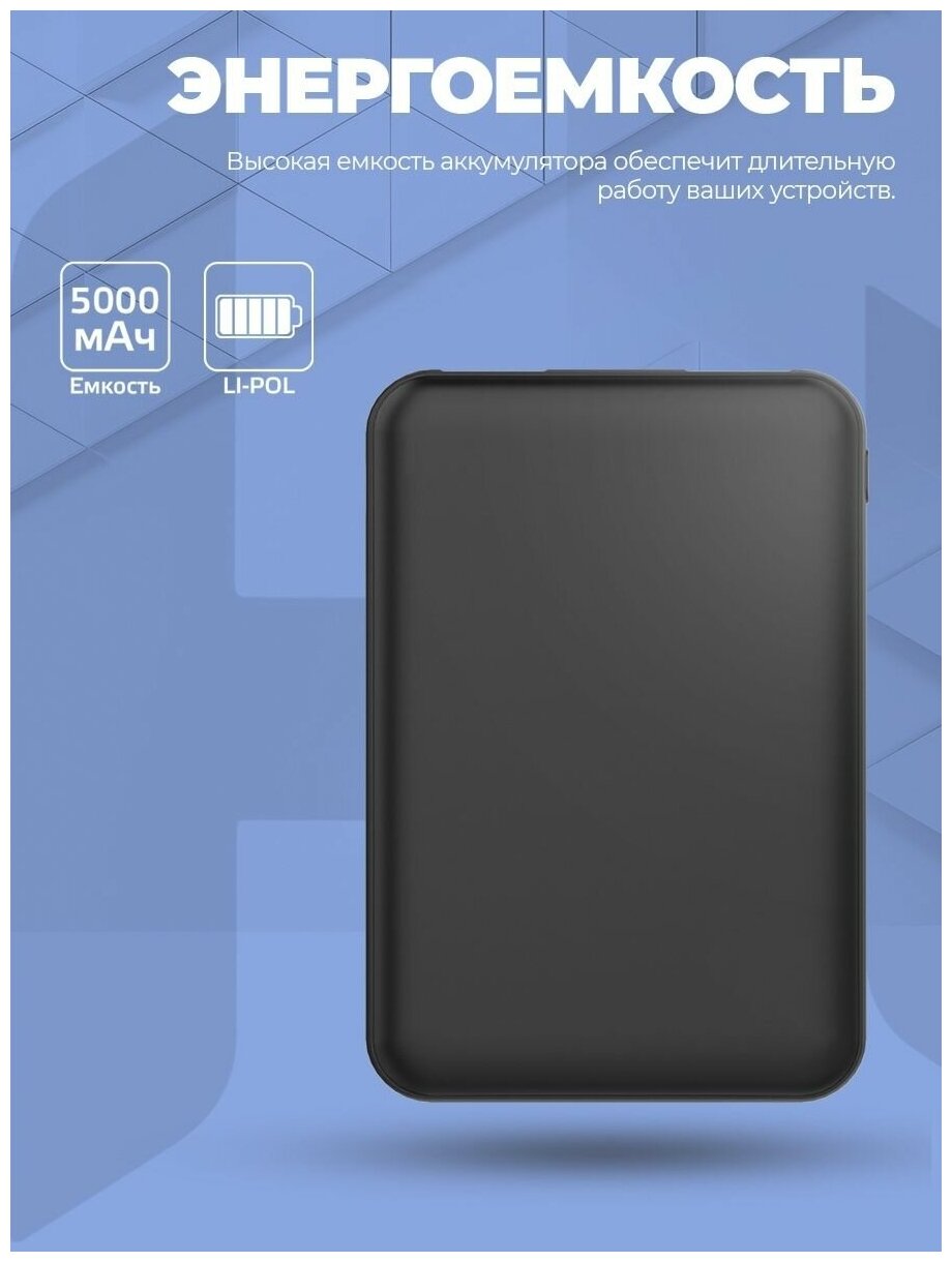 Портативное зарядное устройство 5000 мАч / Power bank 2 USB, Type-C / Повербанк компактный с двумя выходами интересное: