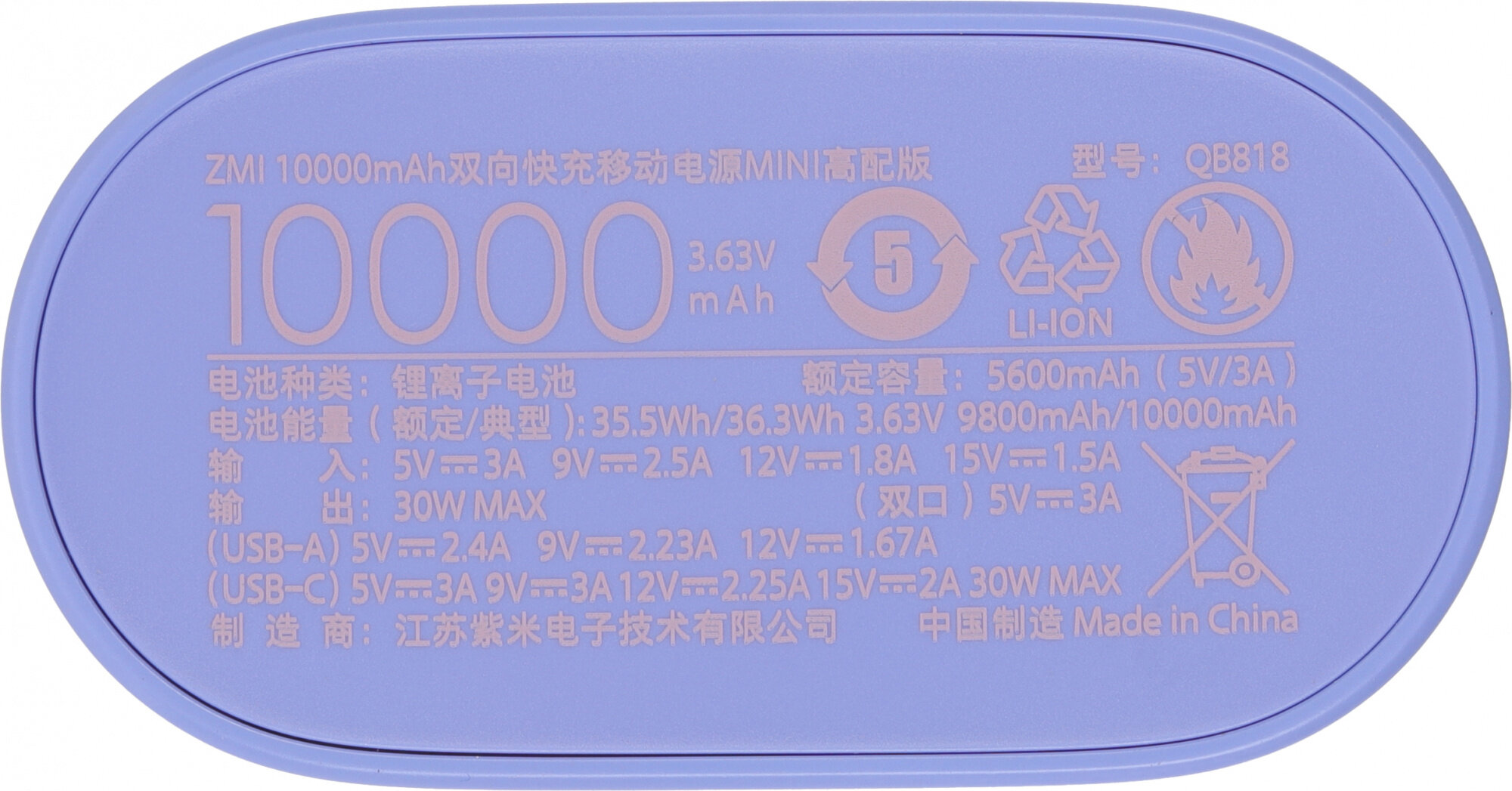 Внешний аккумулятор ZMI (Mi) QB817 10000mAh Type-C 3A, 22,5W/QC+PD/фиол-роз