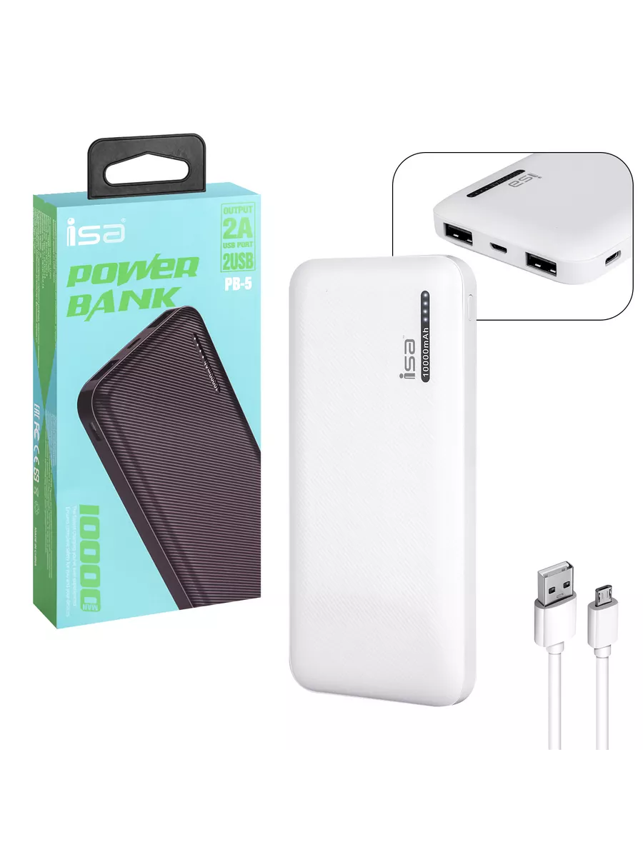 Внешний аккумулятор Power bank ISA PB-5 10000 mah, белый / Повербанк / Аккумулятор для телефона / Power bank 10000 mah