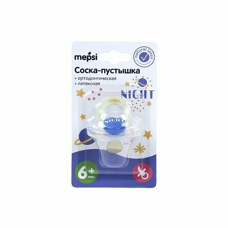 Соска-пустышка латексная ортодонтическая MEPSI "Night" от 6 мес.