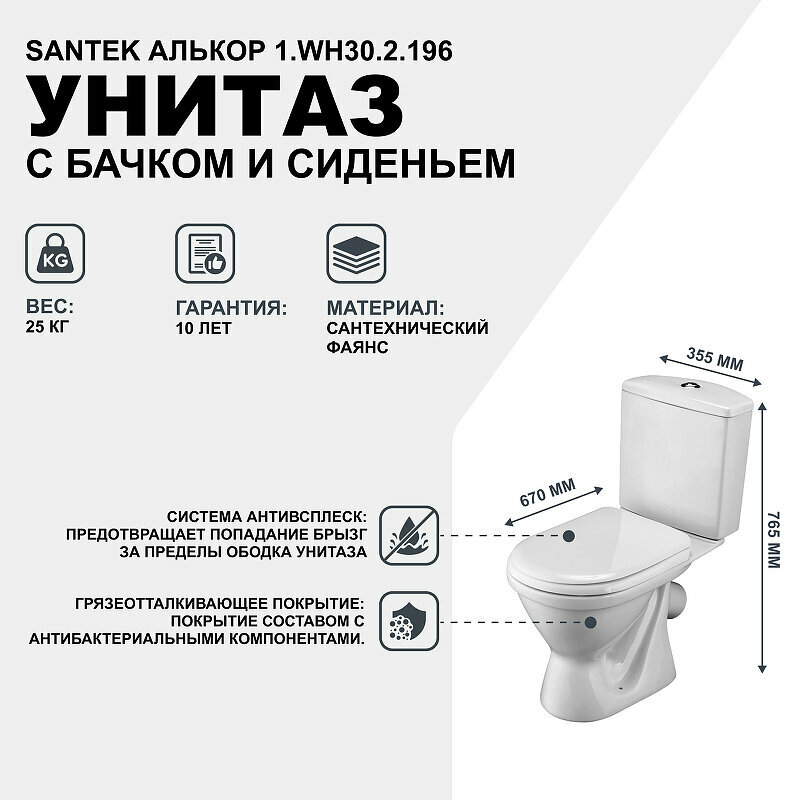 Унитаз Santek Алькор 1.WH30.2.196 с бачком и сиденьем