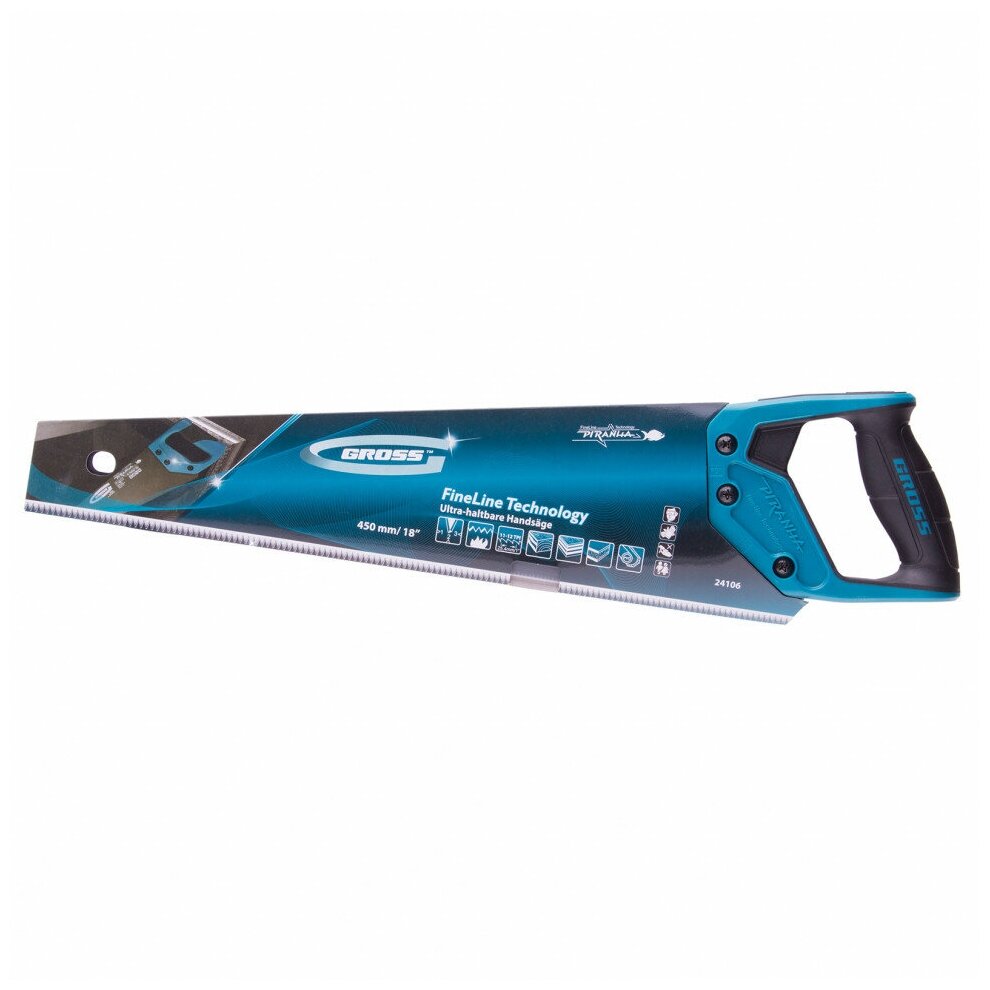 Ножовка по дереву GROSS PIRANHA 450 мм,11-12 TPI,зуб-3D,кал.зуб,тефл.покр.полотна,2-х комп.рук-ка 24106