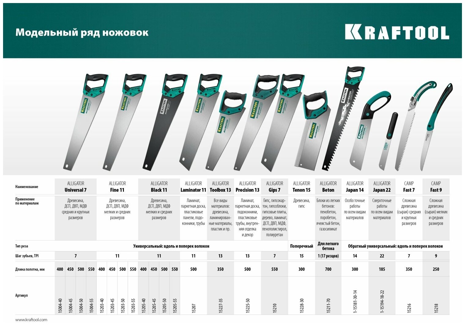 Ножовка для точного реза KRAFTOOL Alligator Black 11 550 мм 15205-55