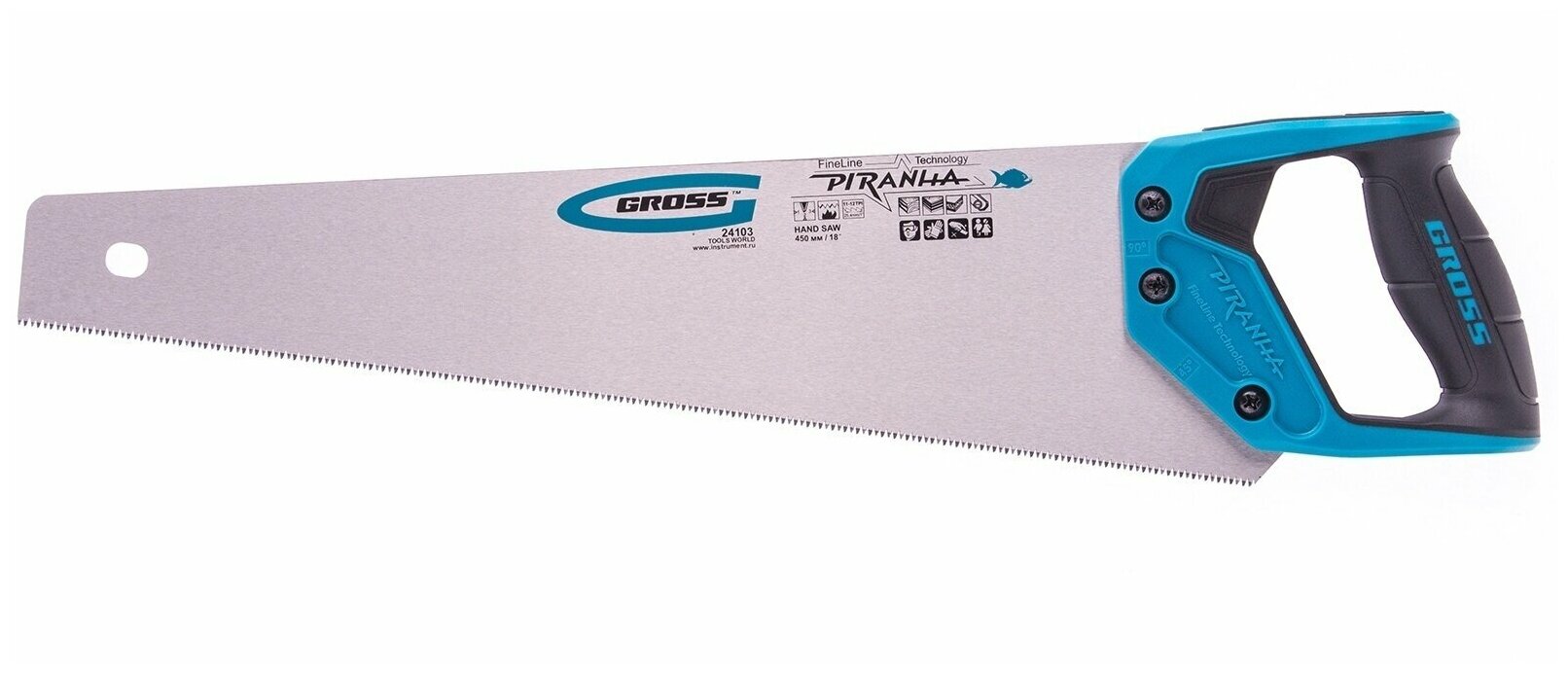 Ножовка по дереву GROSS PIRANHA, 450 мм, 11-12 TPI, зуб - 3D (24103), 1507038