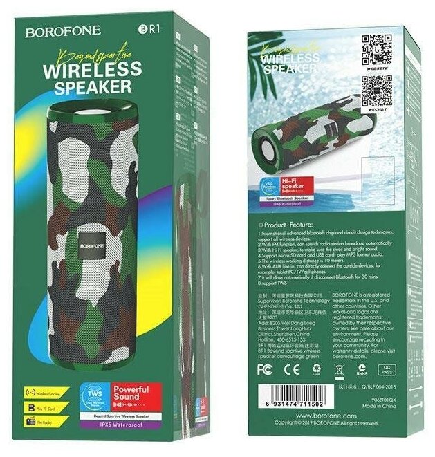 Беспроводная колонка Borofone BR1 камуфляж интересное: